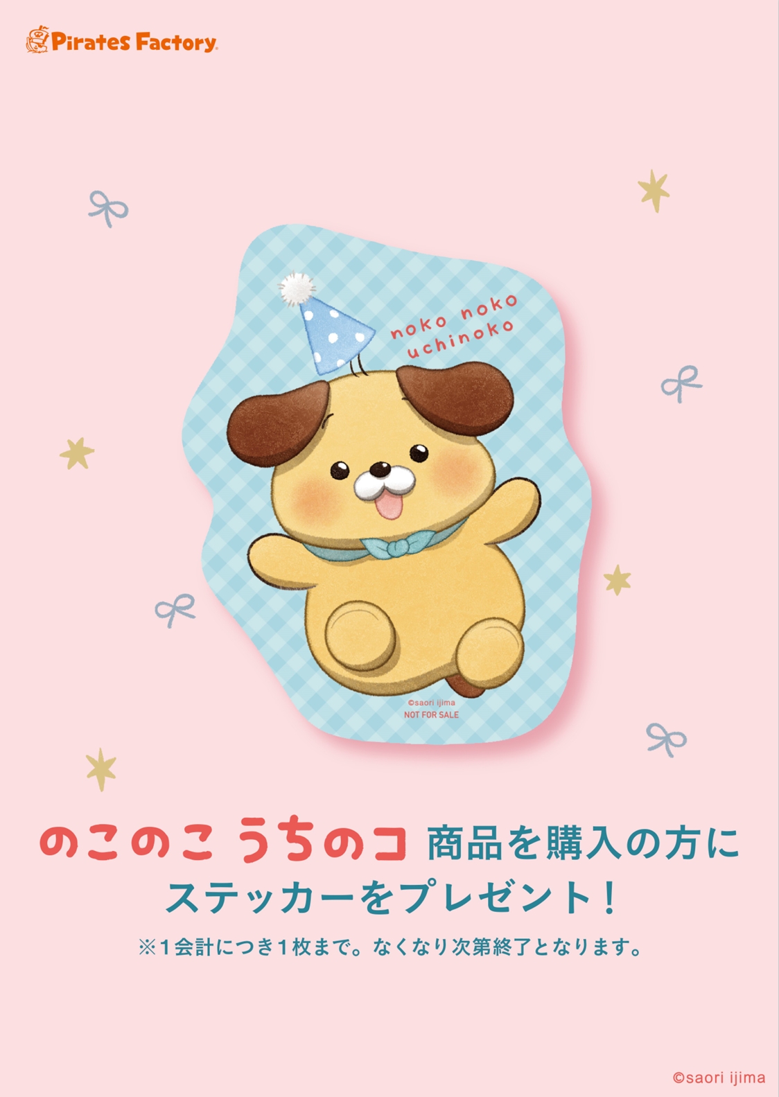 『のこのこ うちのコ商品をお買い上げ方』にステッカー1枚をプレゼント☆