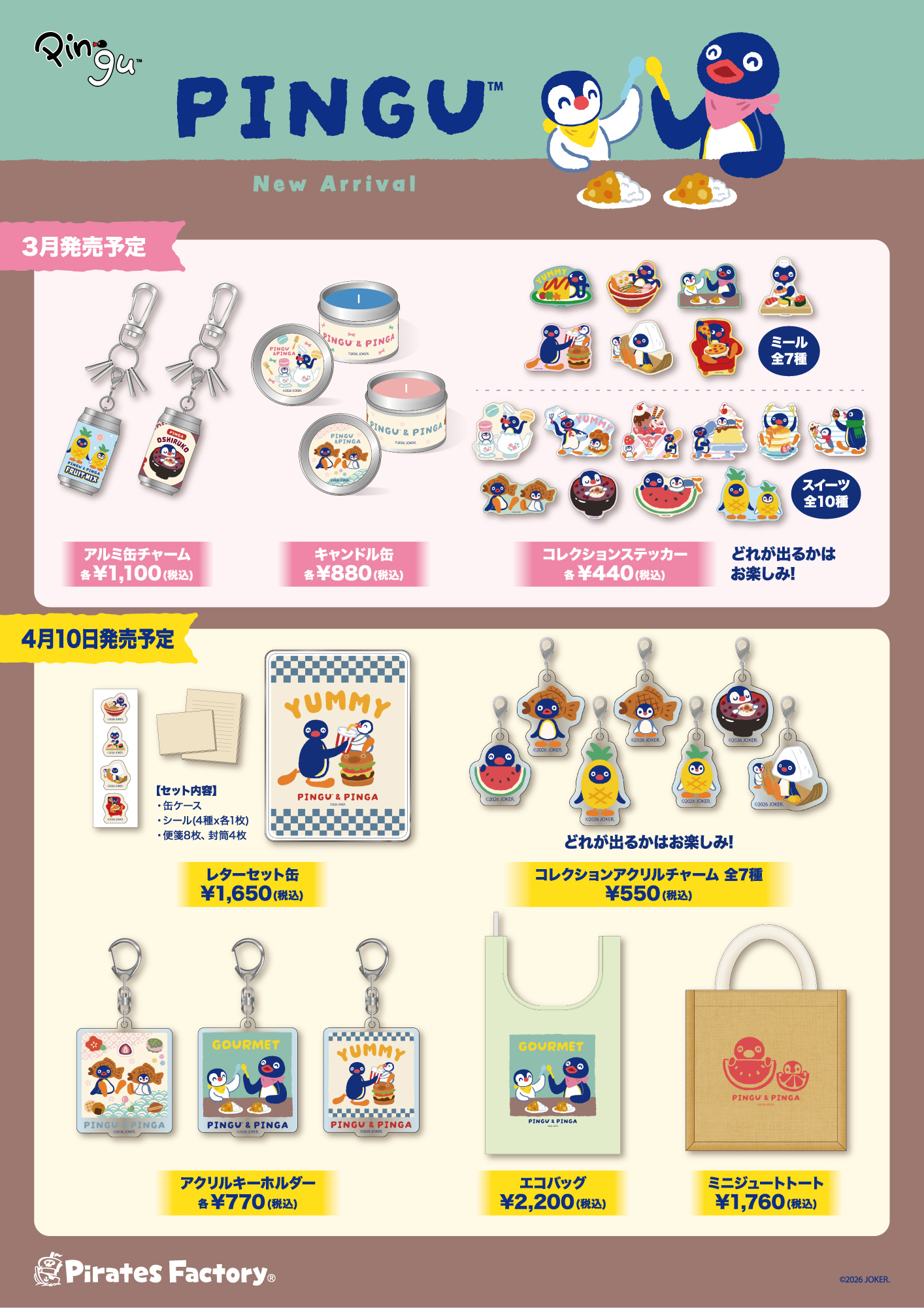 現在、京王百貨店 新宿店内「パイレーツファクトリー・ギフツ」にて開催中の Pingu SHOP より、3月・4月発売商品のご案内です。